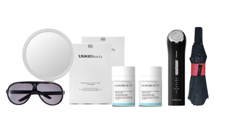 面膜*2+導入儀*1+膠原凝膜100g*2+黑膠傘*1+LED化妝鏡*1+護目鏡*1