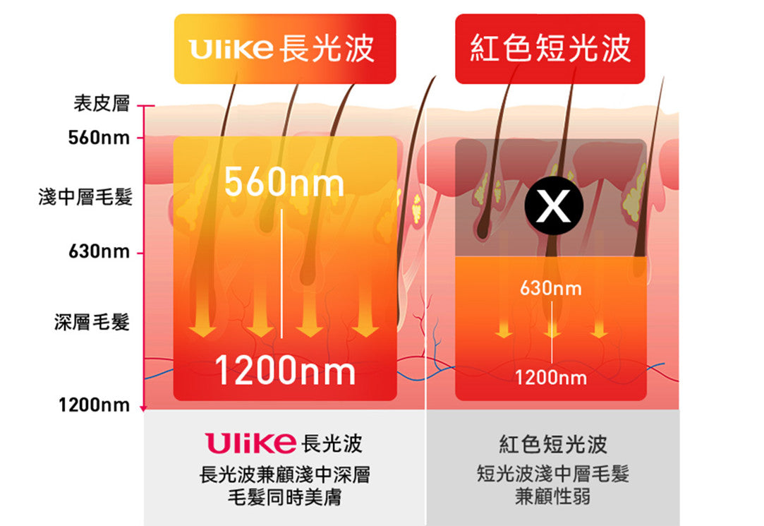 560nm-1200nm長光波,脫毛又嫩膚