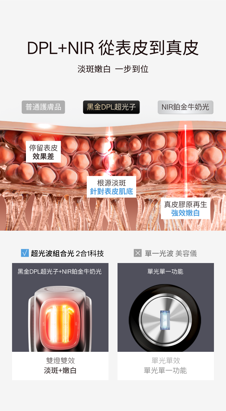 1-2周祛黃去油嫩白, 2-3周去紅血絲真皮層膠原新生, 3-4周淡紋淡斑去痘印。